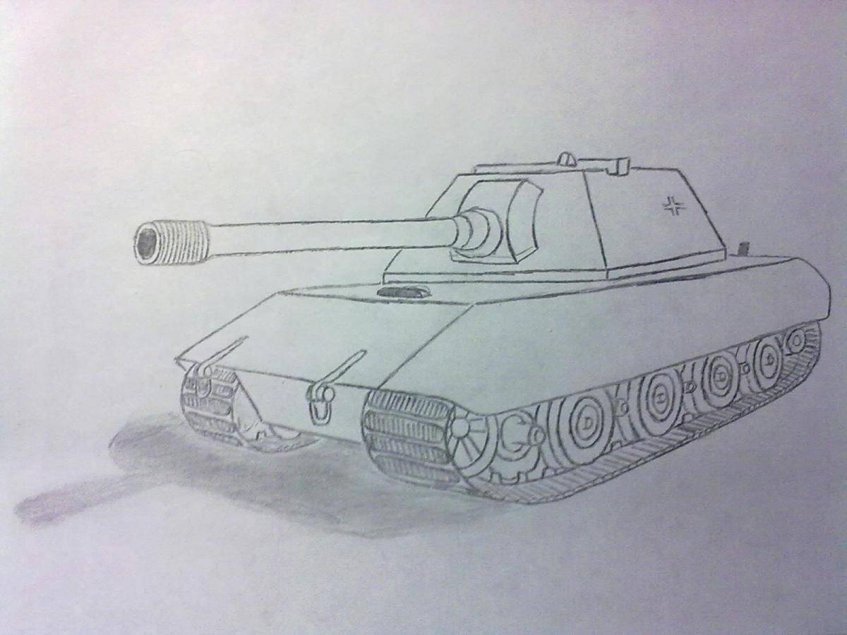 Начать рисовать танк лучше с наброска простым карандашом. Сильно им лучше не давить на бумагу и не делать множество линий. Ведь это плохо стирается ластиком и испортить в дальнейшем готовый рисунок.