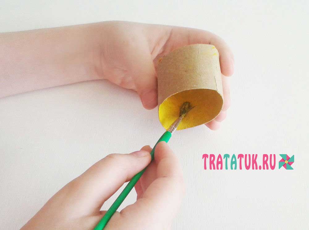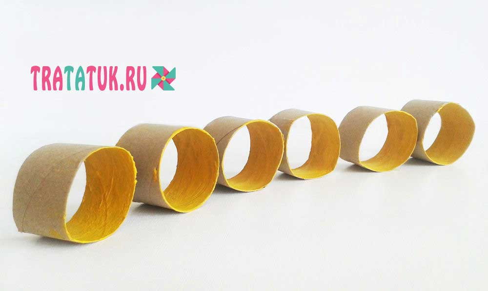 - втулки в количестве 3-6 шт. окрашивают в нужные цвета, или обклеивают цветной бумагой;