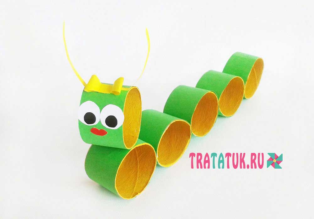 Гусеница из втулок от туалетной бумаги готова, она может быть и в качестве поделки насекомого в детский сад, и отличной игрушкой для ребенка.