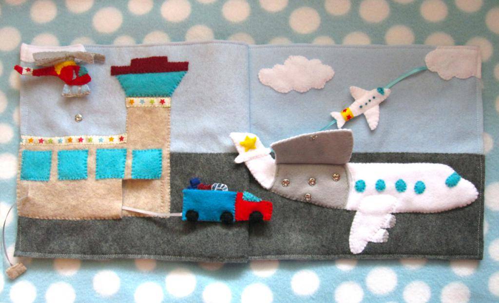 Детские книги шьют по одинаковой схеме. Первое, что нужно, – прицепить к лицевой тряпочке уплотнитель. Вырезаете все детали книжки и ее элементы. На страницу из фетра части закрепляют булавочками в своем расположении. Прострачивают машиной для шитья или пришивают самостоятельно иглой. Две стороны обложки нужно сшить вместе, а хвостики спрятать во внутреннюю часть. Можно использовать элементы на липучках, но в таких случаях, чтобы не испортить материю книги, мягкую часть липучки нужно пришивать к основе книги. Есть три вида швов, которые можно использовать при создании такой книги.