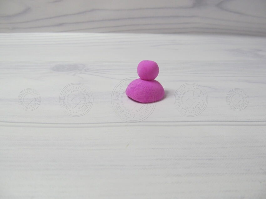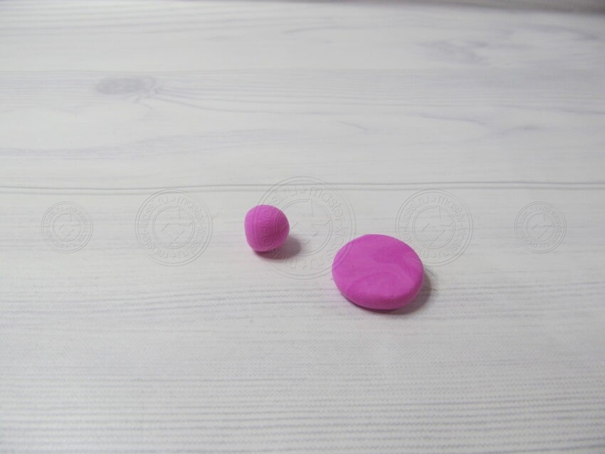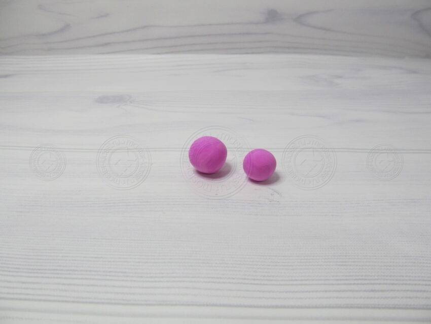 19. Из малинового оттенка материала мы раскатываем два шарика. Один должен быть больше другого.
