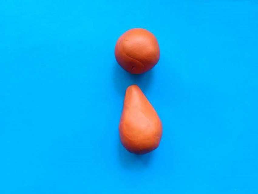 Лепим два шарика (меньшего и большего размера). Из меньшего делаем голову, из большего — туловище.