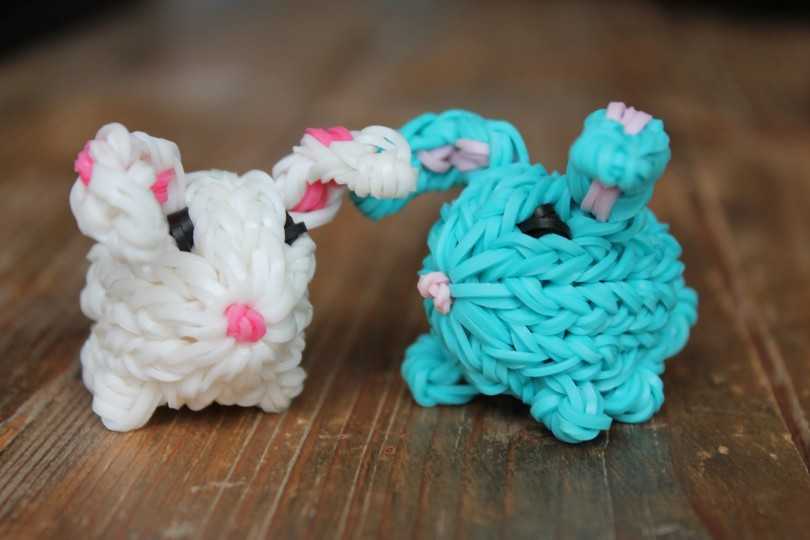 Из маленьких резинок, окрашенных в разные цвета, можно создавать разнообразные объёмные поделки, и необязательно это должны быть животные. Станок представляет собой отрезок широкой доски, из которой торчат 4 гвоздика — на них накидываются петли. Творческий процесс немного похож на вязание крючком, хотя есть и отличия.