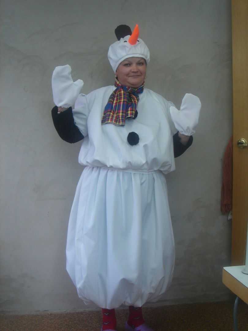 Если же нужно сшить костюм снеговика на взрослого своими руками, можно сделать более сложную конструкцию. Такой костюм должен быть более выразительным, а неудобство в виде жары или неповоротливости взрослый способен потерпеть.