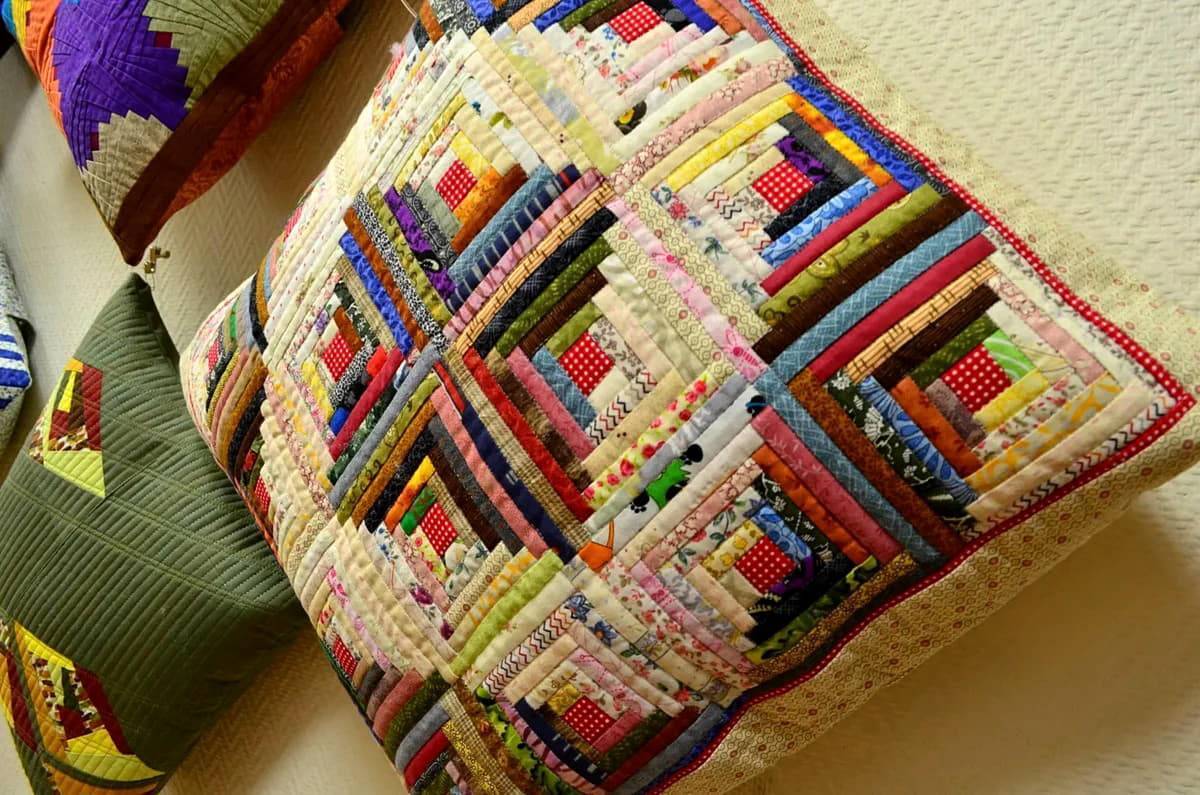 Давайте рассмотрим, как сшить подушку в технике лоскутного шитья. Для подушки оно может выполняться вручную или на швейной машинке. При сшивании деталей вручную они сначала скрепляются булавками и мелким наметочным швом пришиваются друг к другу.