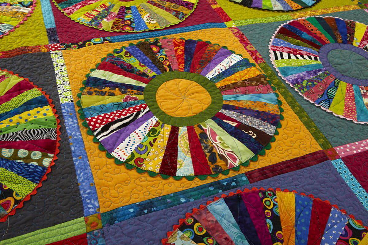 Еще один интересный вариант – “пицца”. Он не нуждается в шаблоне, можно брать лоскуты любых очертаний и воплотить любые самые смелые идеи. Детали необходимо в произвольном порядке наложить на подготовленный отрез, который будет использован в качестве основы.