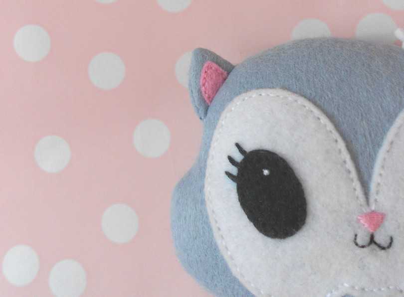 Глаза оформляют бусинками или просто рисуют, нос вышивают нитками, щеки рисуют специальными красками по ткани, усики — леску, протягивают сквозь мордочку, их длина ограничивается только фантазией.