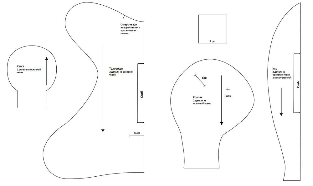 Выкройка зайки-сплюшки в натуральную величину ФОТО: postila.ru