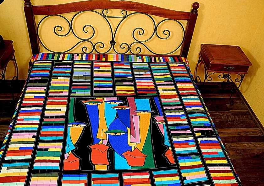 Покрывало на кровать из нескольких скомбинированных разноцветных тканей