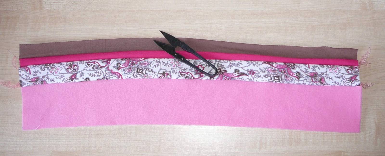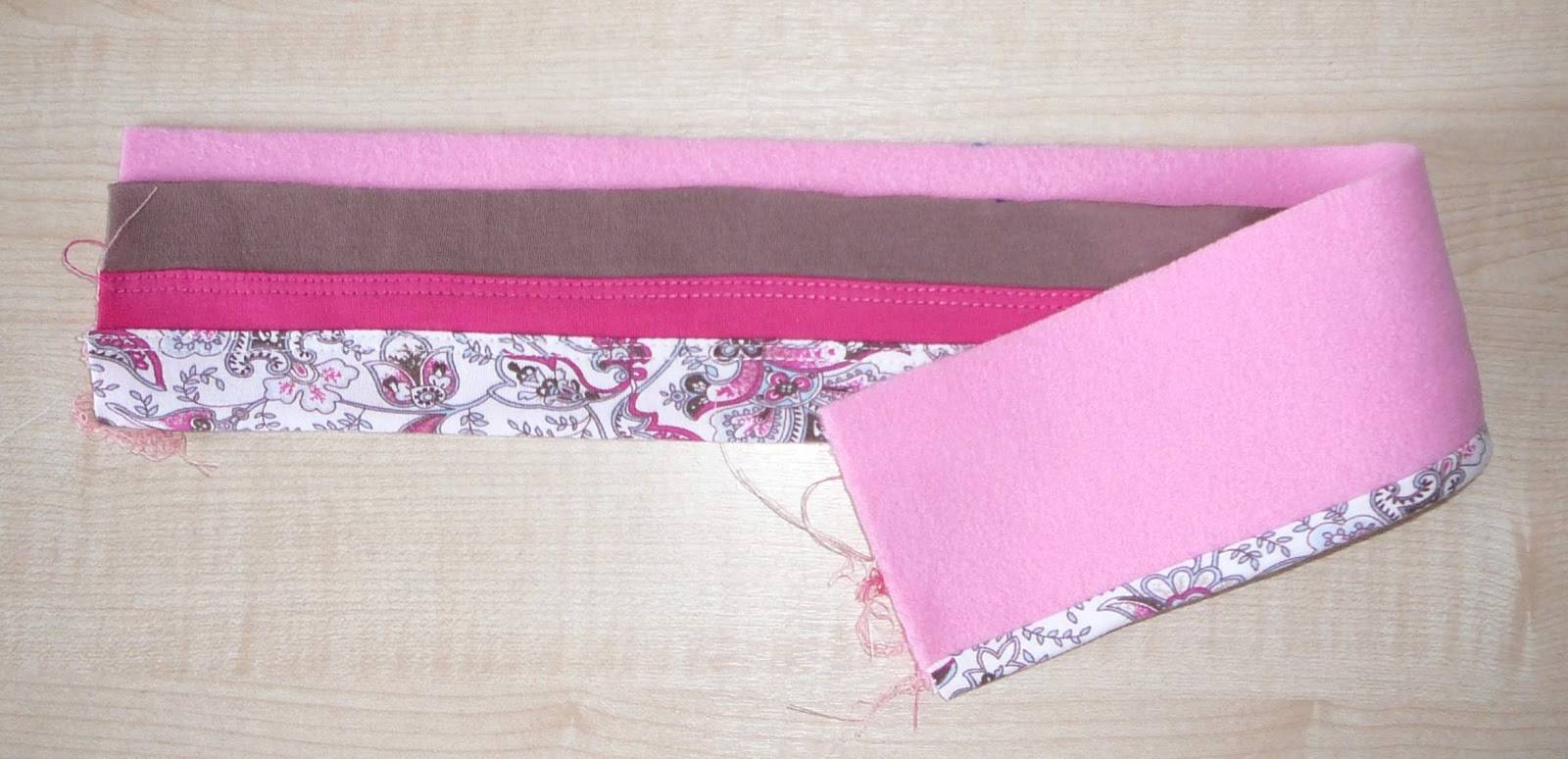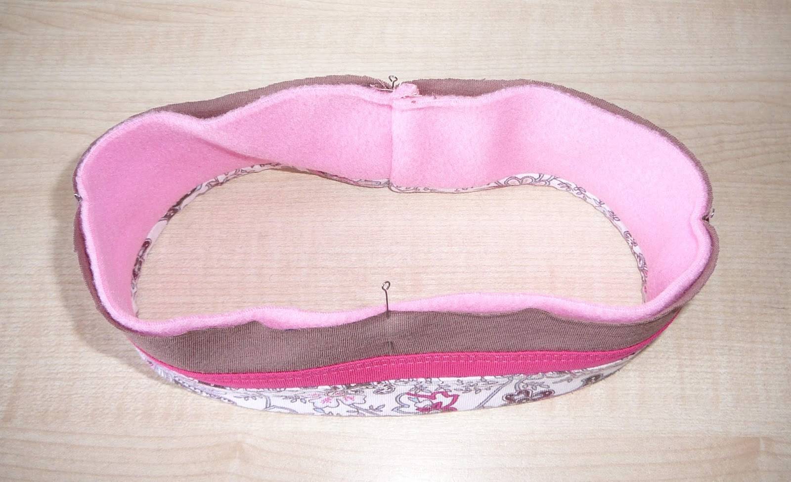 Сложить аксессуар в 2 слоя так, чтобы швы совпадали. Далее нужно определить, какая из сторон будет изнаночной, приколоть все булавками и прошить.