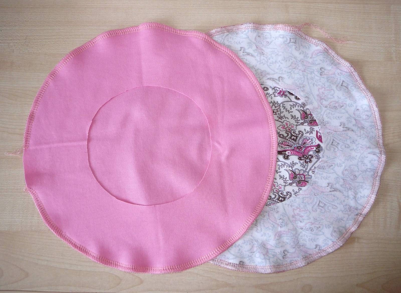 - Прострочите на 1 см от края круга, так, чтобы обе детали скрепились между собой;