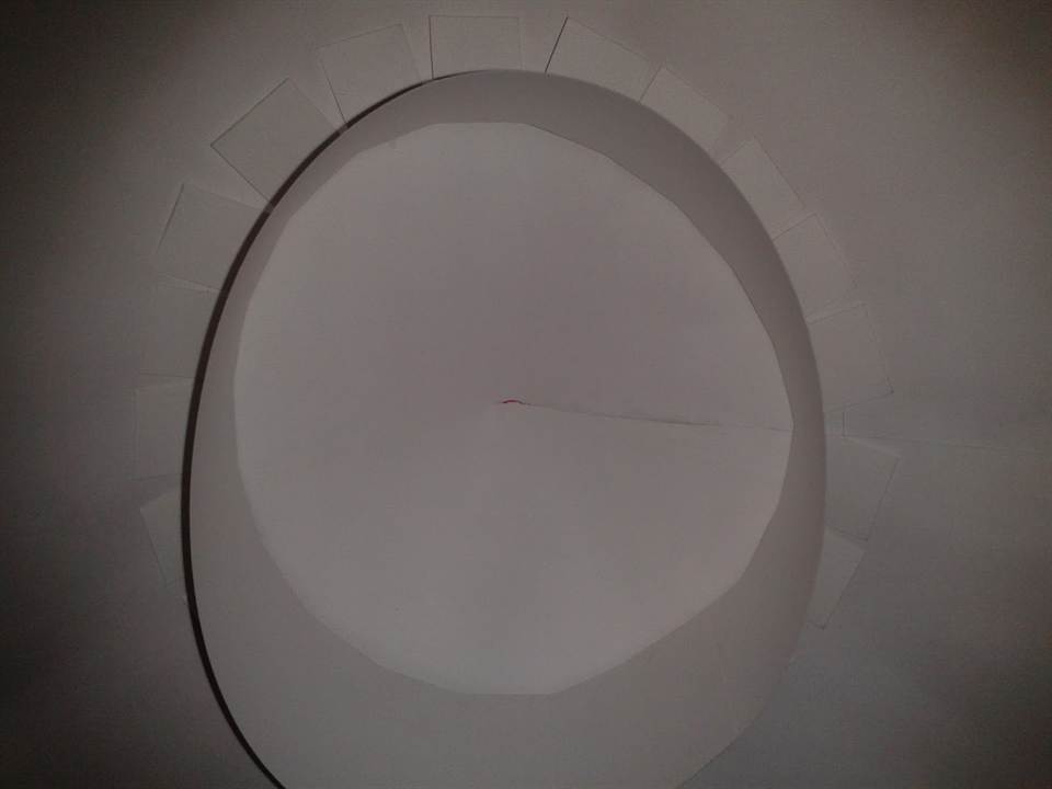На картонном листе намечается круг с радиусом 25-30 см и вырезается.