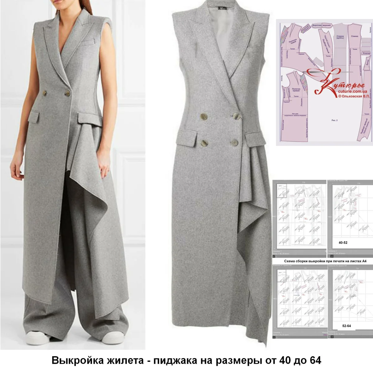 Жилет женский длинный из шерстяной ткани — выкройки: