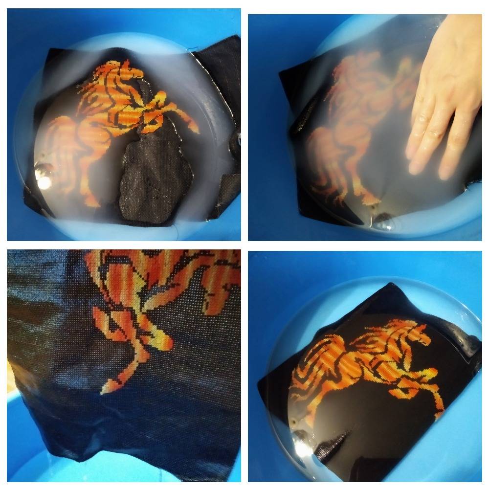 - спустя пять минут – аккуратно извлечь канву, за это время она успеет немного отмокнуть;