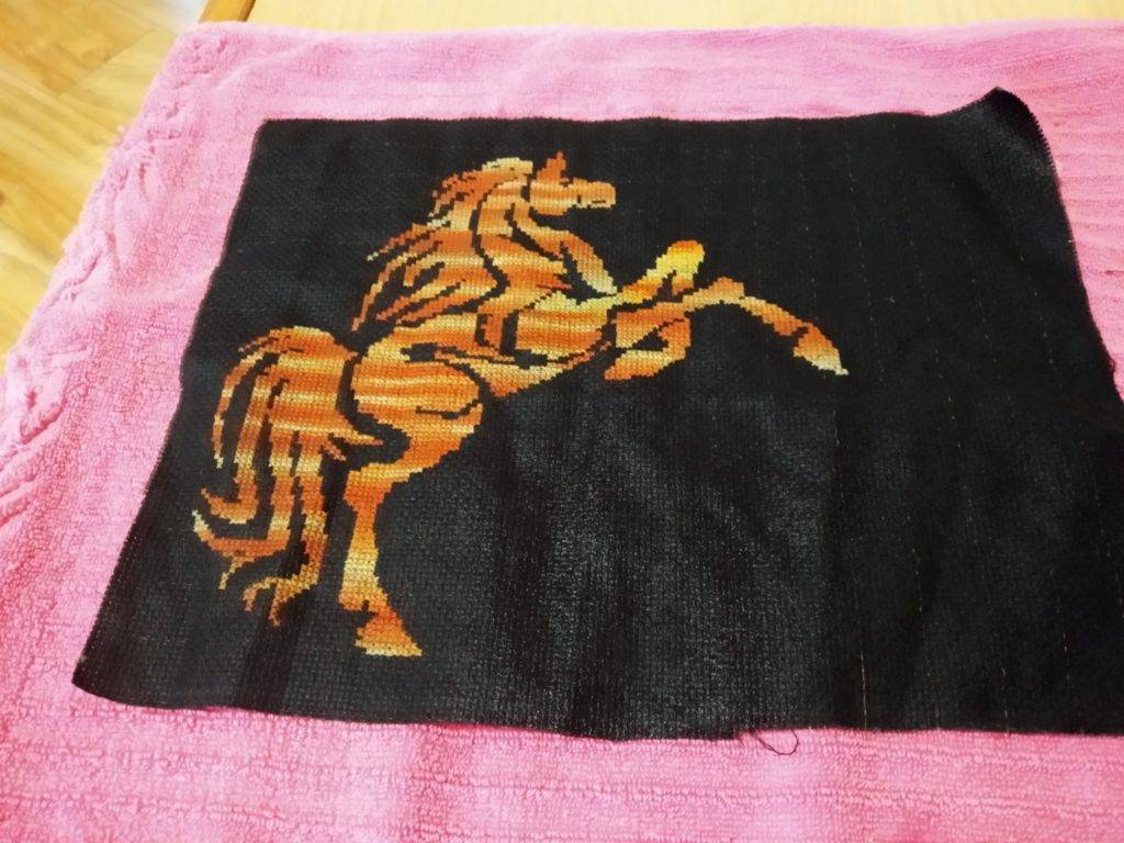 После окончания стирки приготовьте белое или светлое полотенце. Или такое, в котором вы уверены, что оно не закрасит канву и не оставит свои ворсинки на работе.