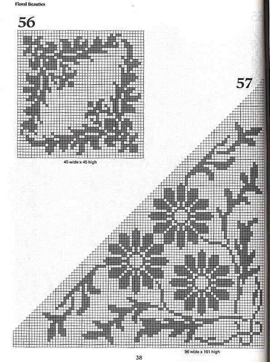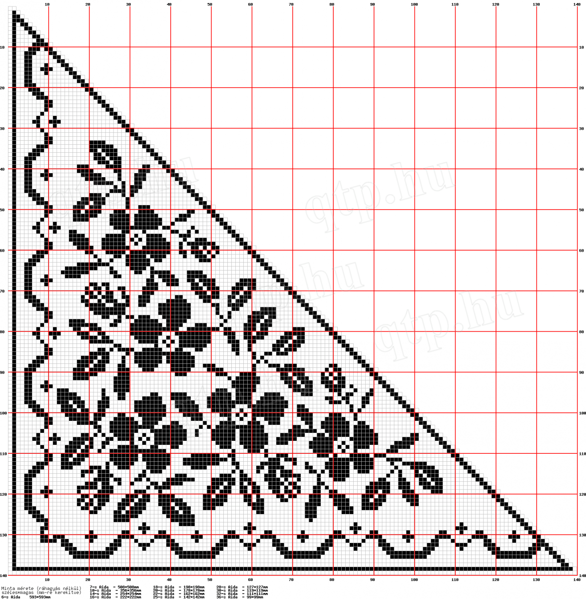 Необходимый материал — шелковый вискоза. Необходимое количество — 800 г. Что касается инструмента, вам понадобится крючок №1,5. Отправной точкой является нижний угол шали. Также по схеме филейные клетки украшены растительным орнаментом.