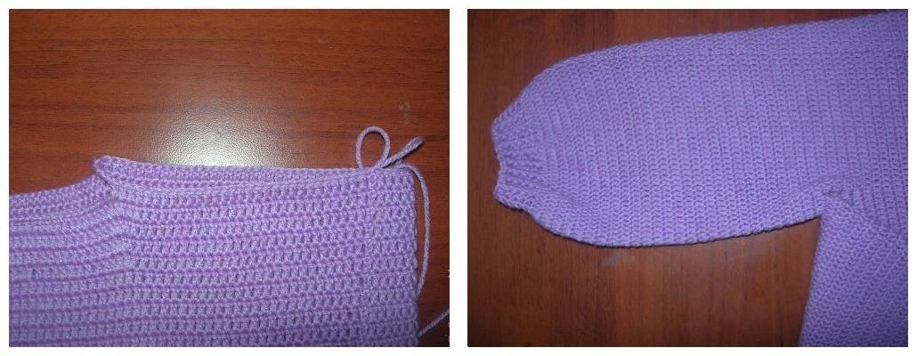 Петли рукавов располагаются между петлями спинки и полочек. Планка ворота выполняется резинкой 1 х 1 высотой 2 см.