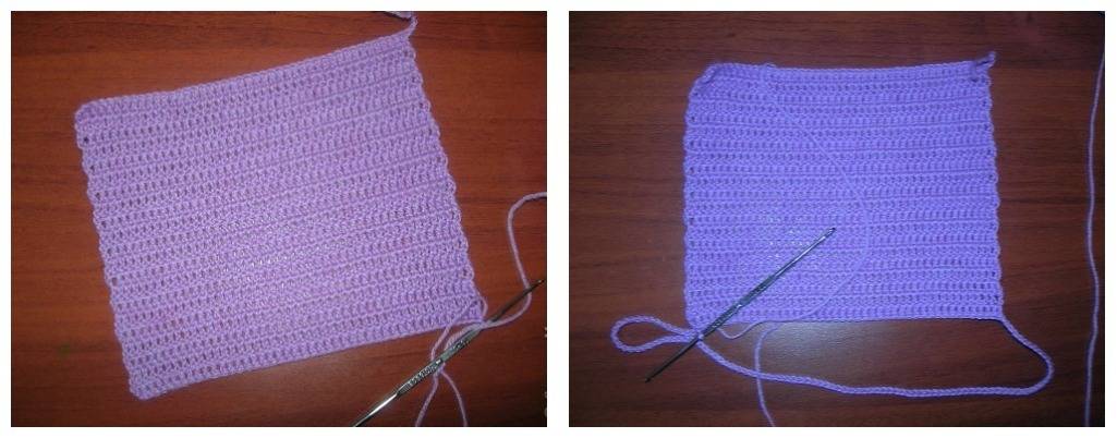 - Провязав 15 см, отложить полотно и приступить ко второй половинке. Связать в зеркальном отражении.