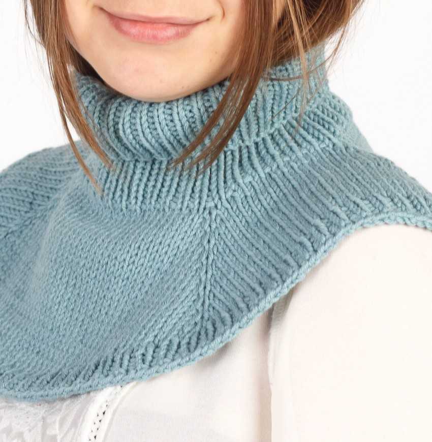 Прежде, чем взяться за работу, вы должны хорошо себе представлять, что у вас должно получиться. По сути это верх свитера: высокая горловина, переходящая в нагрудник. Все вы, конечно, представляете нагрудники для малышей – вот у вас должно получиться что-то подобное, только теплое и с воротником. Если вы хотите знать, как связать манишку спицами самостоятельно, то учтите, что есть два способа. Первый – самый простой! С ним справится любой новичок.