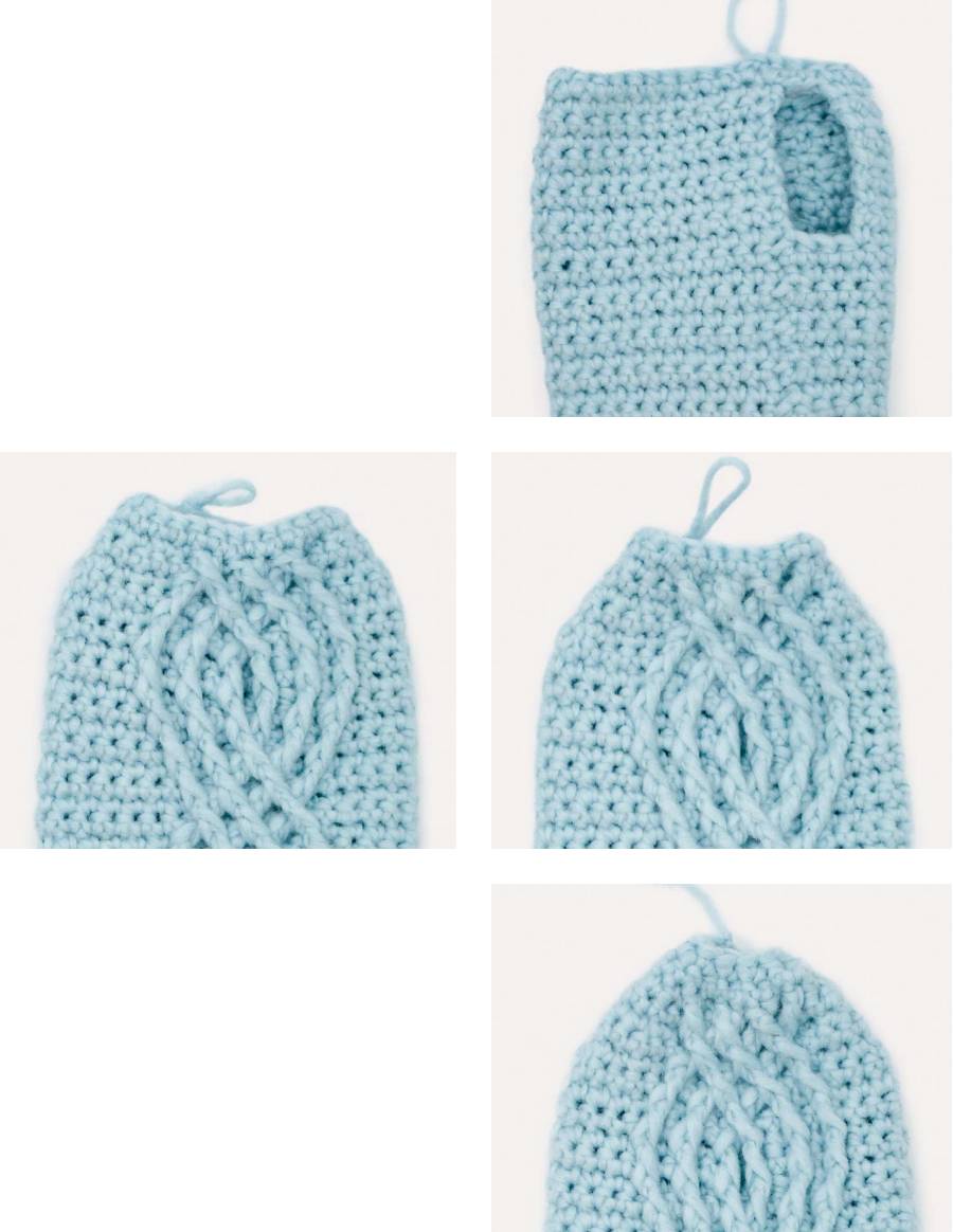 - Перевернуть вязание и набрать две воздушные петли подъема. Продолжать вязать, пока длина полотна на станет равна длине запястья.