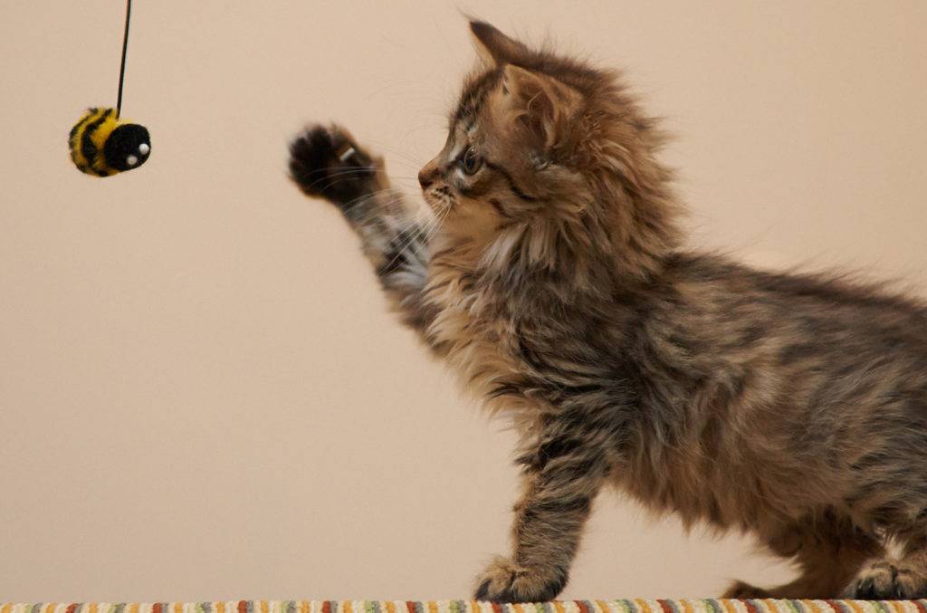 Хозяин должен периодически менять котёнку игрушки и принимать участие в совместных играх