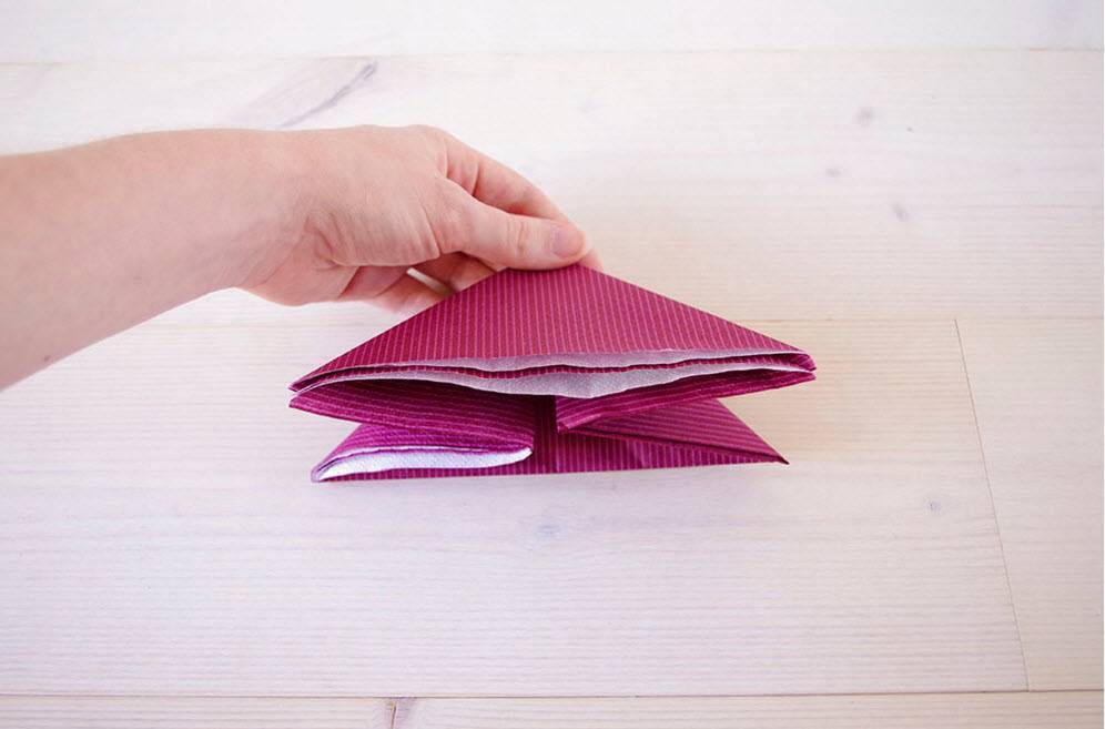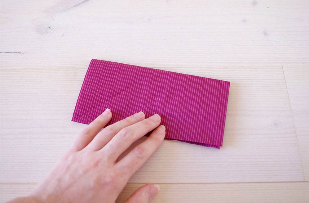 Складываем пополам салфетку.