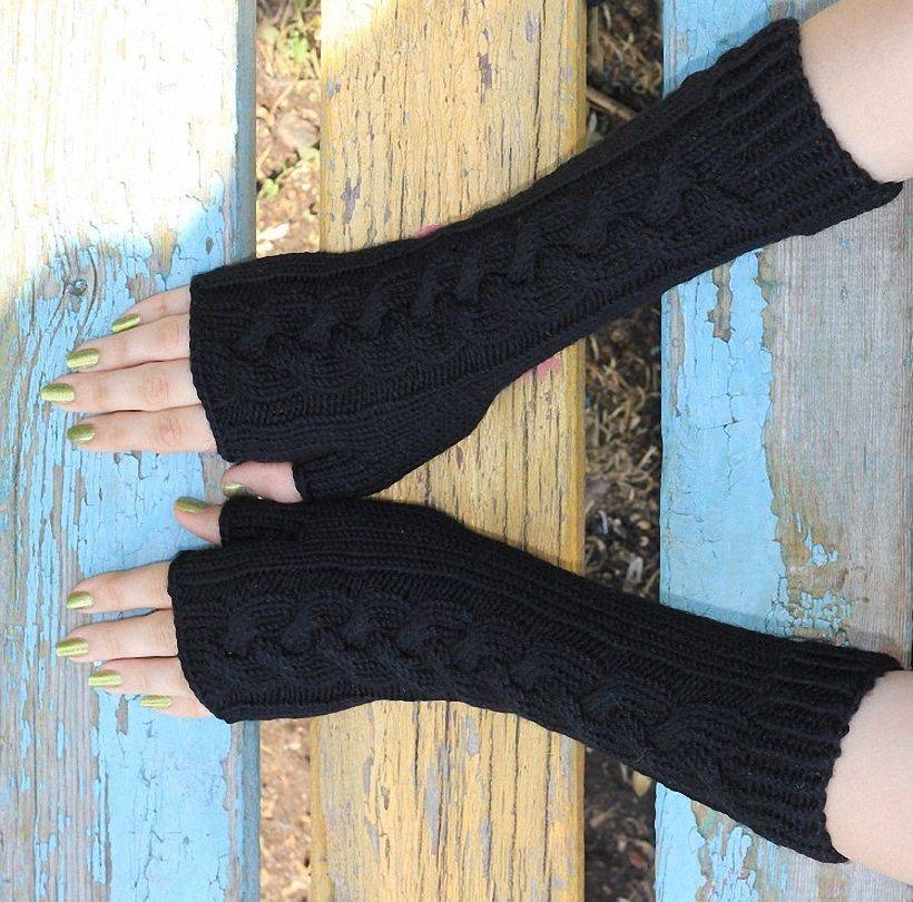 Как связать длинные и короткие перчатки без пальцев спицами?