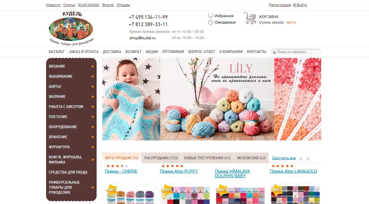 На сайте есть раздел с акционными товарами, где можно купить пряжу по акции за половину цены. Буклированная пряжа из хлопка пригодится для обустройства дома, свяжите из нее корзинки для мелочей, плед для детской, пуф в прихожую. Сайт удобен тем, что к любой пряже можете подобрать компаньона, а также приобрести аксессуары для вязания.