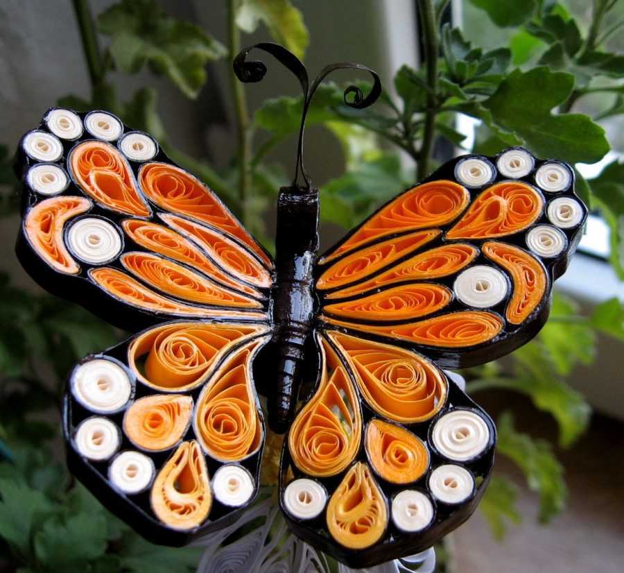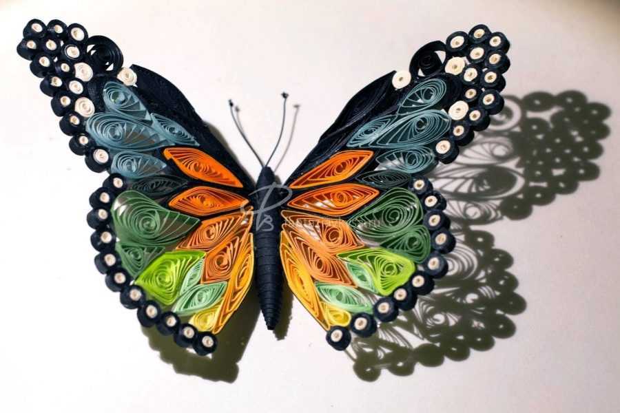 Эта техника предполагает изготовление поделок из полосок бумаги. Бумагу можно нарезать самостоятельно или купить готовые полоски в магазине. Бабочки в стиле квиллинг можно сделать как плоскими так и объемными, такая поделка не займет много времени и подойдет для маленьких детей.