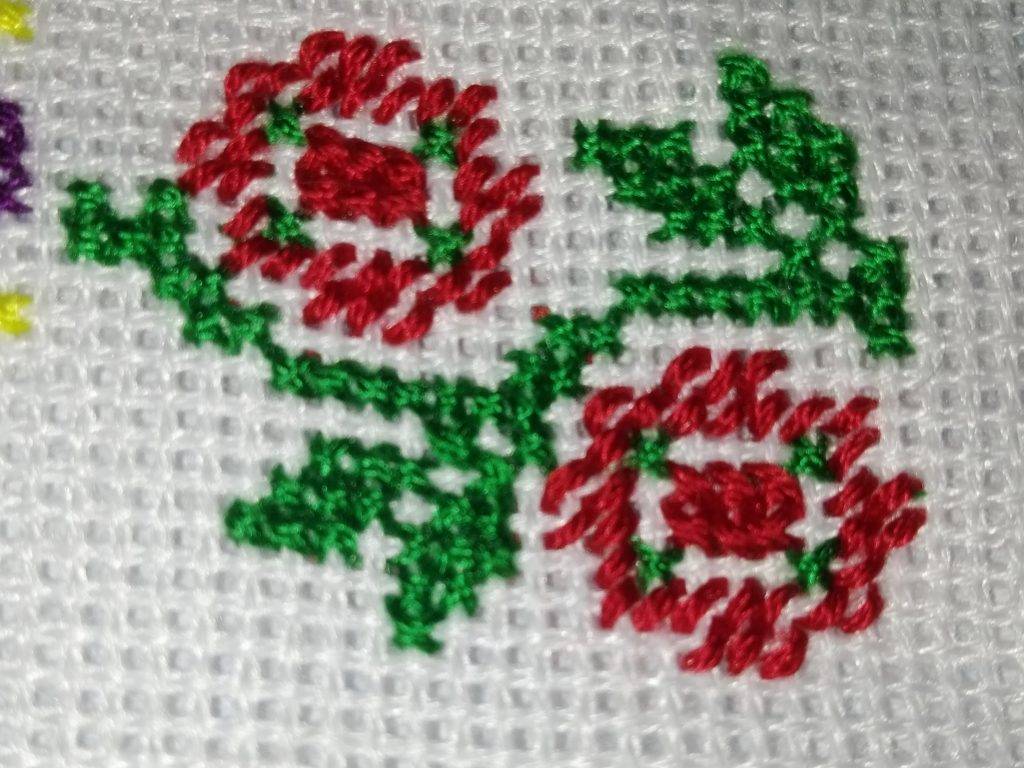 Более опытные мастера чередуют ряды полукреста и гобеленового шва. Изнанка получается не самого красивого вида, зато лицевая сторона вышивки будет ровной и более привлекательной.