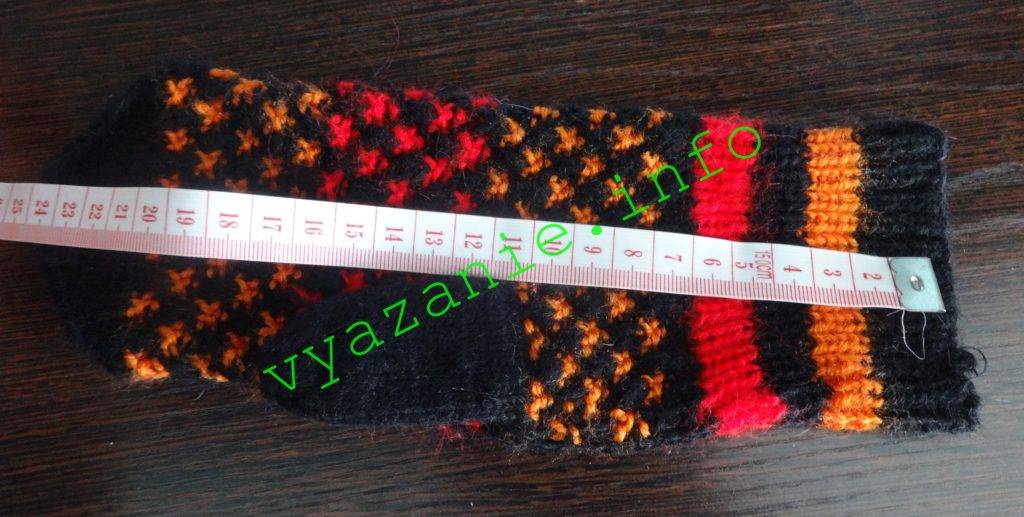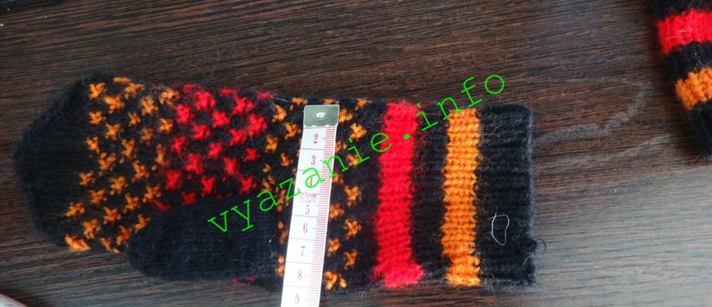Продолжаем вязать варежку до такой высоты, пока она закроет мизинчик.