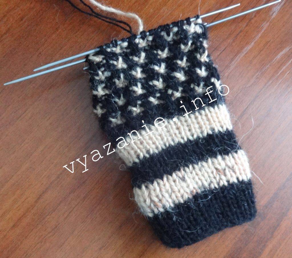 - Как только Вы закончите резинку, вяжите варежку в круговом движении лицевыми петлями.