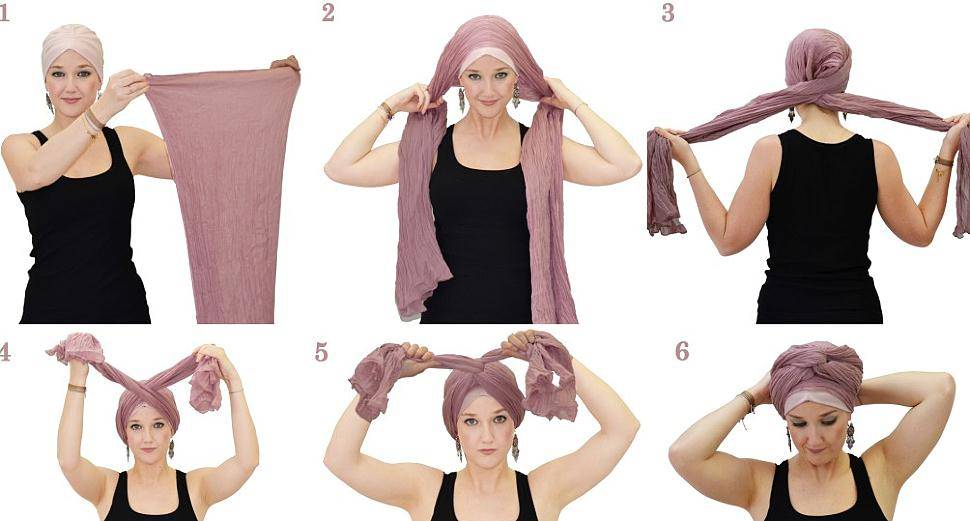 Второй вариант – изготовить тюрбан из платка, придерживаясь следующих рекомендаций:
