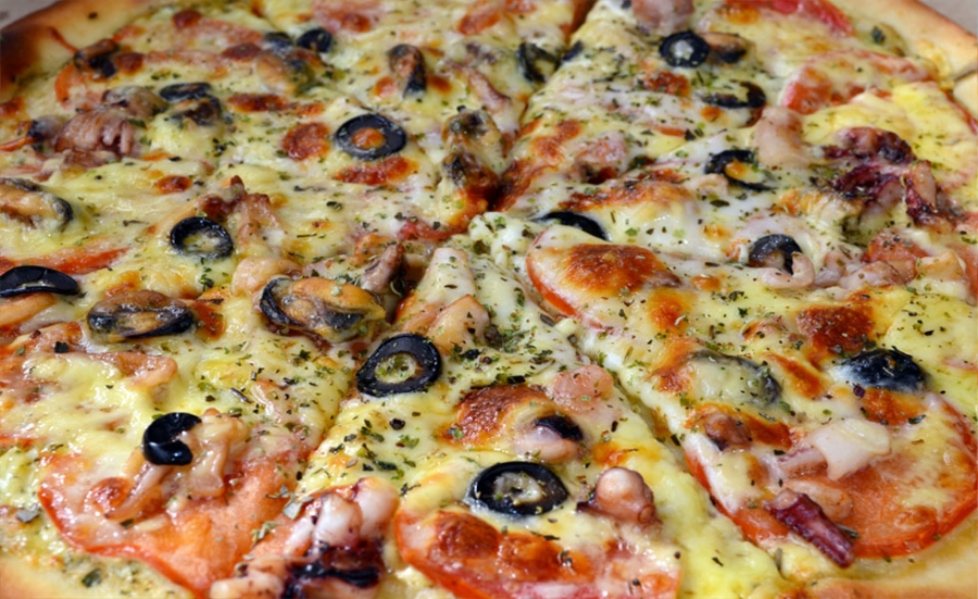 Пицца из морепродуктов (часто называется “Маринара”) – лакомство на любителя чего-нибудь этакого. В её состав входят мидии, креветки, кальмары, часто – оливки и каперсы.