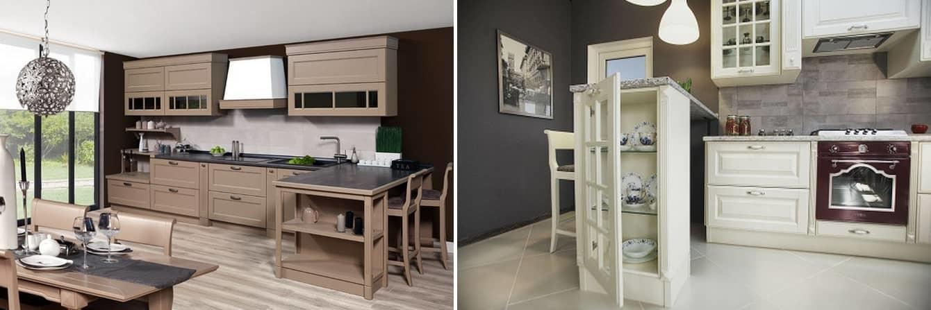 Итальянские дизайнеры предлагают необычные решения, а всё для того, чтобы удовлетворить даже самого требовательного покупателя. Цветовая палитра таких решений включает в себя сотни вариантов, как стандартных, так и изысканных оттенков. Многие итальянские кухни изготовляются по индивидуальному заказу, в зависимости от площади и общей стилистики помещения. По желанию заказчика, кухни из Италии могут быть следующих типов: