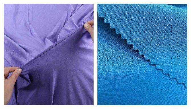 Если говорить о синтетических волокнах, то здесь наиболее соединение эластана с полиэстером. Полученное полотно обладает мягкостью и эластичностью.