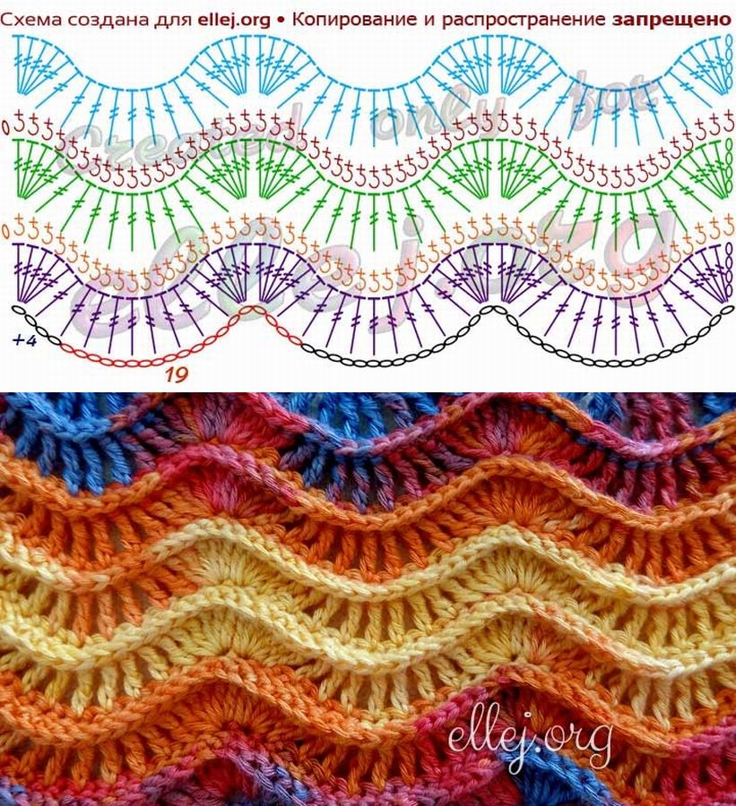 Снуд волнистым узором не зря считается одним из самых красивых. В зависимости от использованного атериала модель можно носить не только зимой, но и в весенний период.