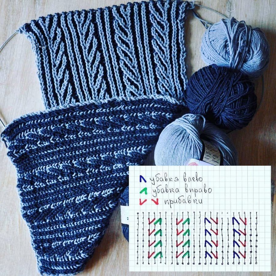 Объёмная модель патентным рисунком сама по себе выглядит очень необычно. А хорошо подобранная цветовая гамма сделает ваш снуд ещё уникальнее.