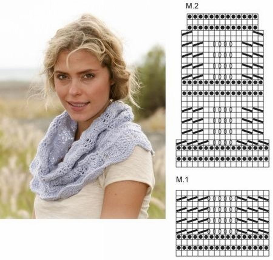 Снуд в два оборота с ажуром. Очень красивая и женственная модель снуда с ажурными элементами.