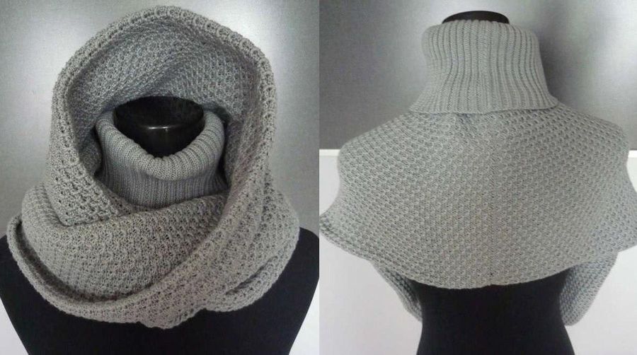 Вязаный снуд-капюшон станет универсальной вещью в холодную погоду.