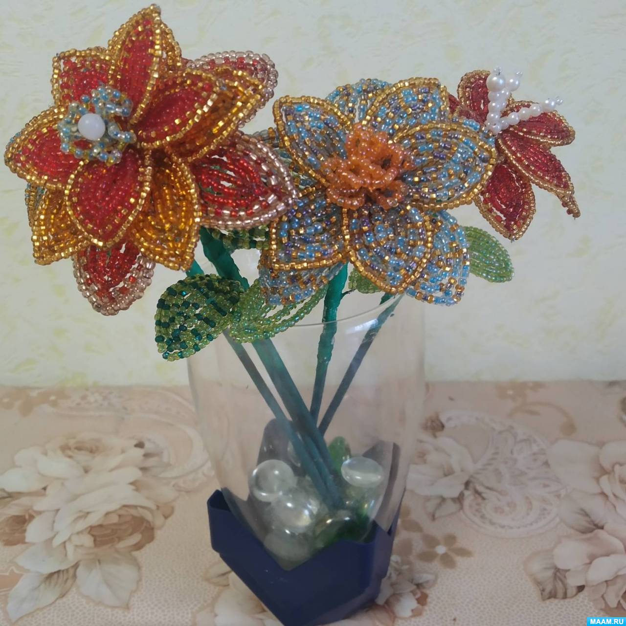 - Бисерная флористика — это один из видов всего мастерства бисероплетения. Суть этого процесса заключается в том, что используемый бисер нанизывается на проволоку, которая, в свою очередь, позволяет придавать готовым изделиям форму.
