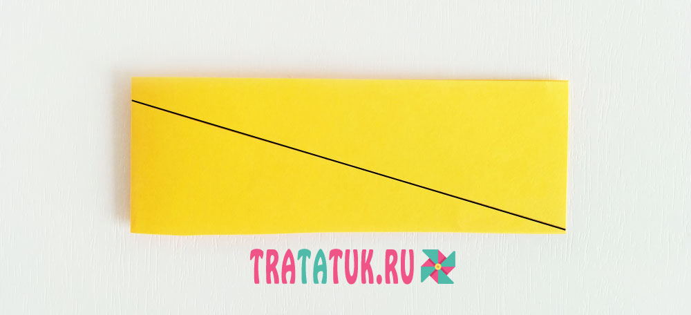 Берем первый листочек и складываем его по диагонали, а затем разворачиваем обратно.