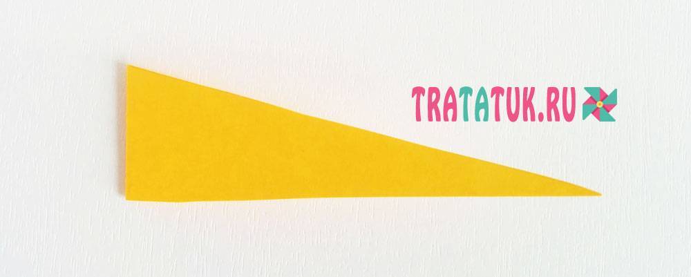 Чтобы сделать такой лист, нужна прямоугольная, довольно узкая полоса бумаги. Чем она уже, тем тоньше листик, хотя очень тонкий делать сложнее.