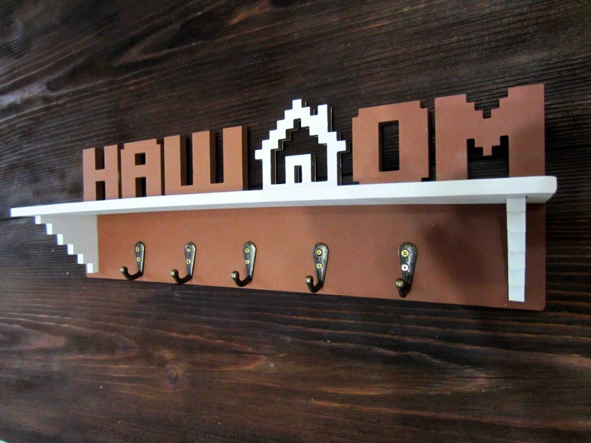 - Когда заготовка высохнет, прикручиваем к ней мебельные крючки — и все готово!