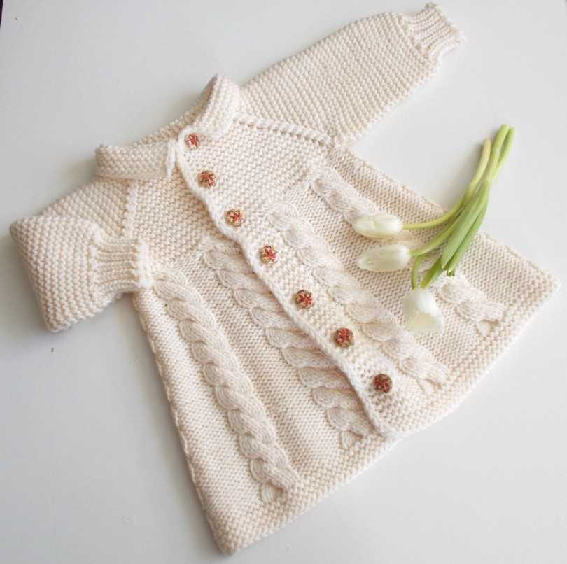 Вот как выглядит готовая кофточка для новорожденного спицами: