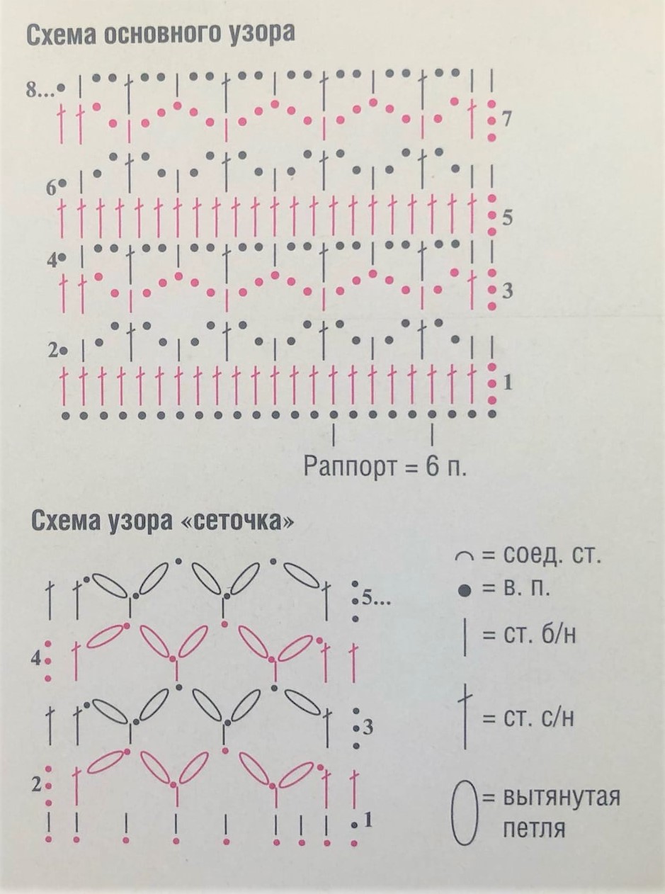 Схема вязания кофты с сеткой: