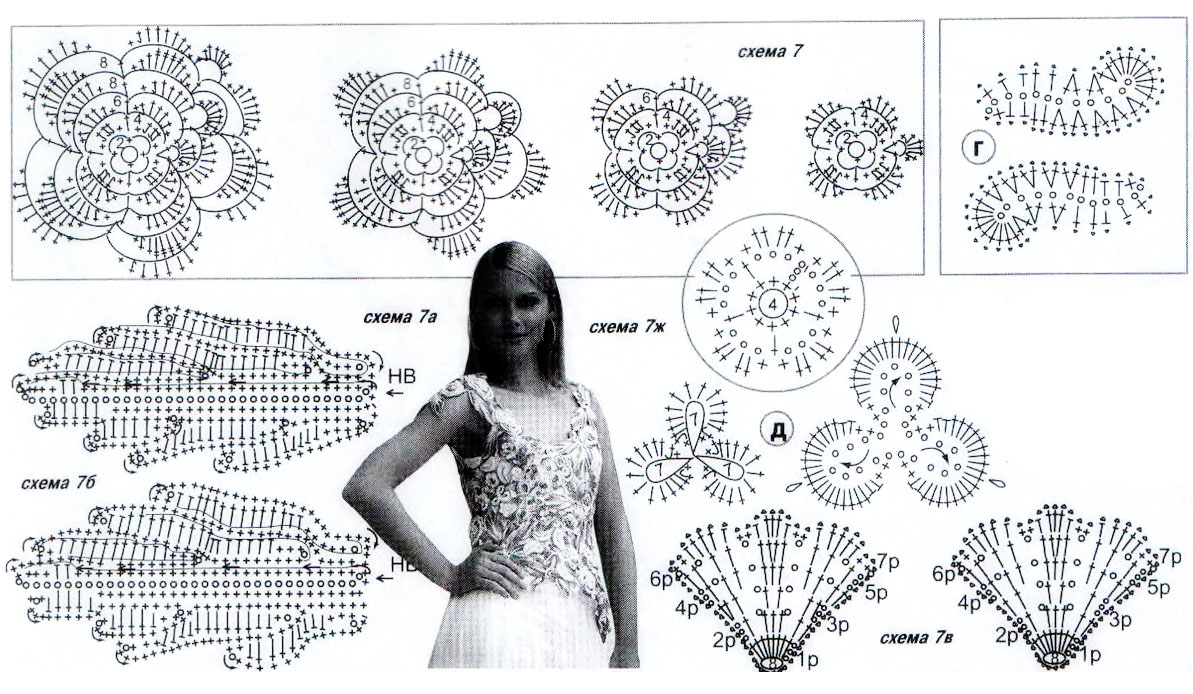 На первом фото я показала как я вязала ажурную кофту в самом начале по журналу мод. Это моя первая работа в этой технике. Кофту вязала на заказ подруге. Моя подруга удовлетворена результатом. Я влюбилась в создание таких шедевров. Прилагаю схему, но как Вы можете заметить, кое-что добавила своё. Люблю сочетать разные техники вязания. Схема вязания ажурных мотивов для кофточки