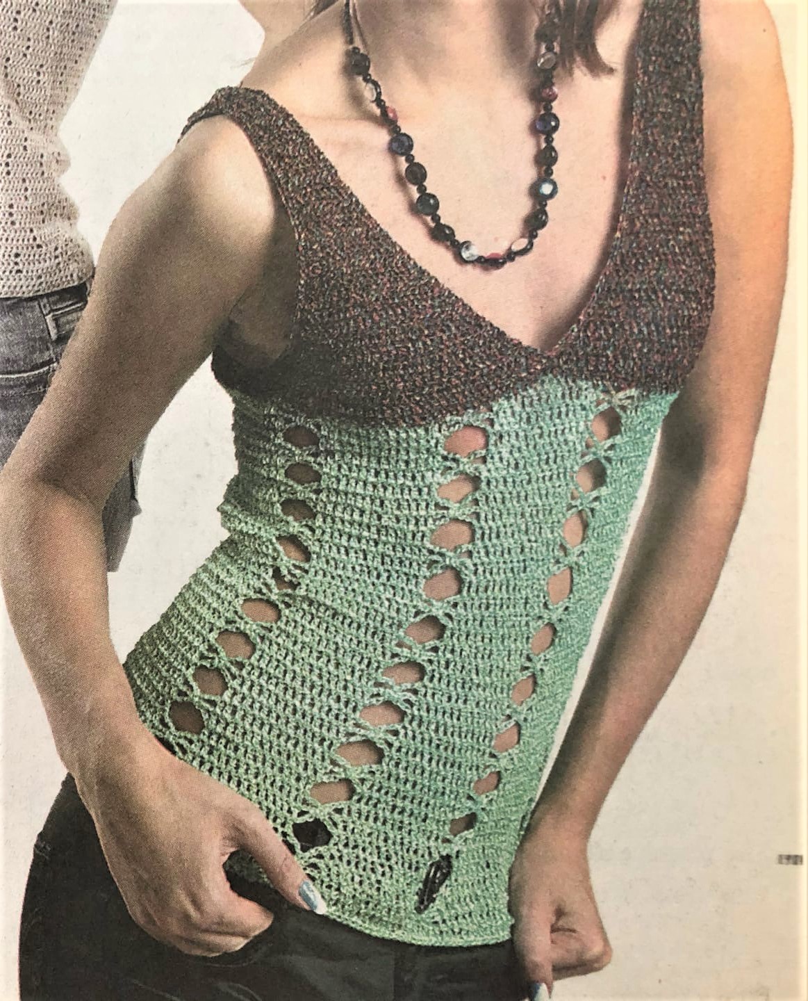Ажурный двухцветный топ