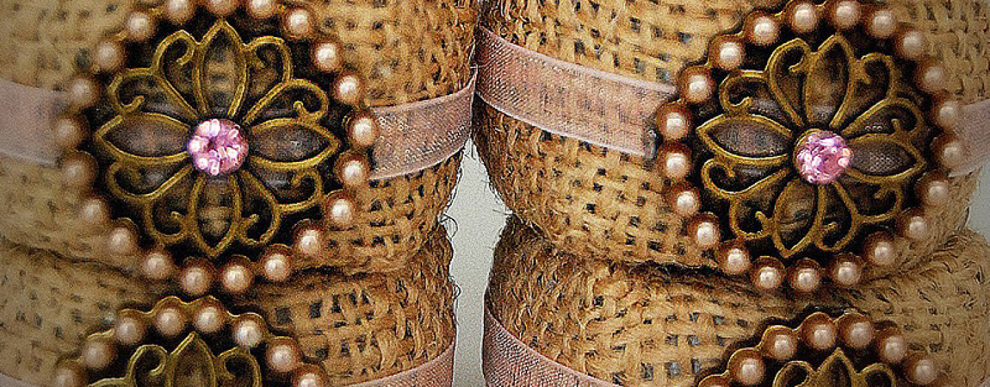 Интересно смотрится вариант нанесения текста на джут. Сделайте небольшое отверстие, проденьте веревочку и завяжите на бантик. Такое кольцо смотрится очень колоритно.