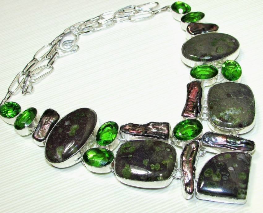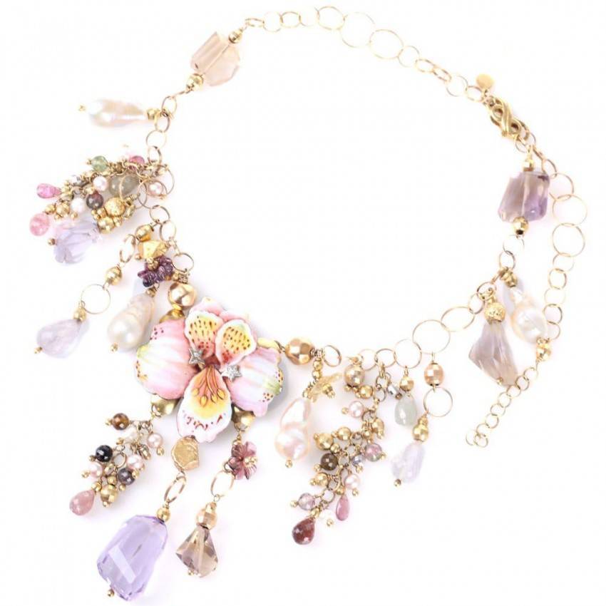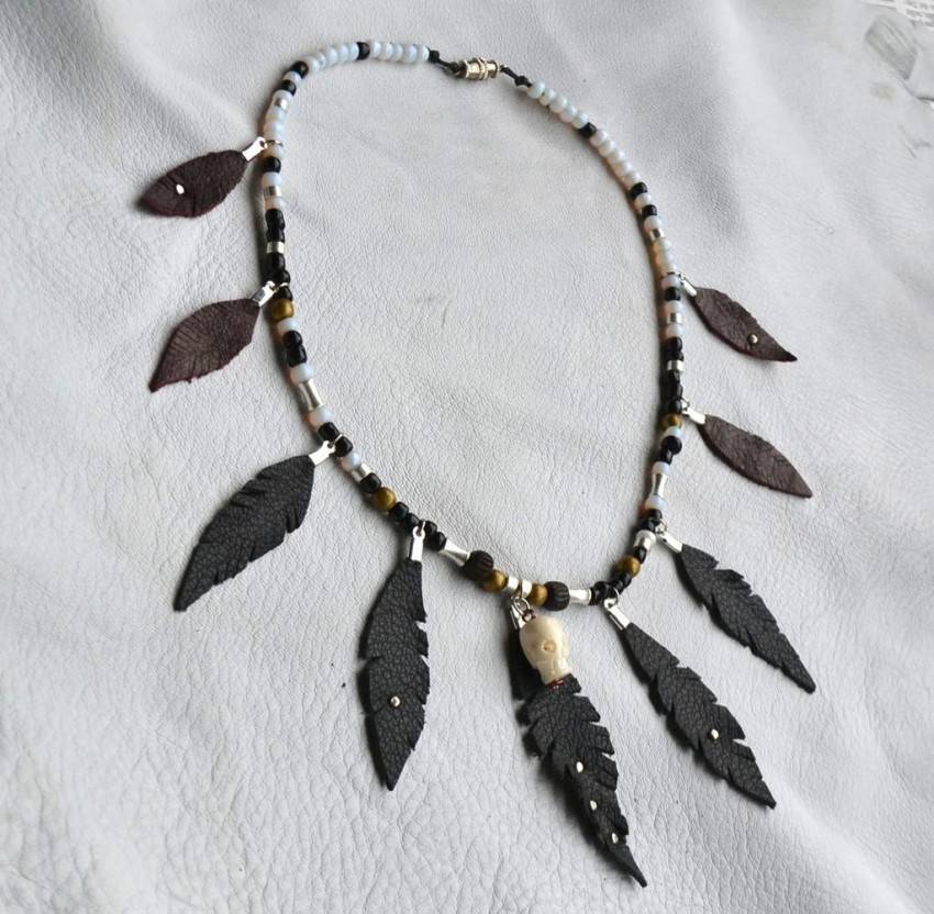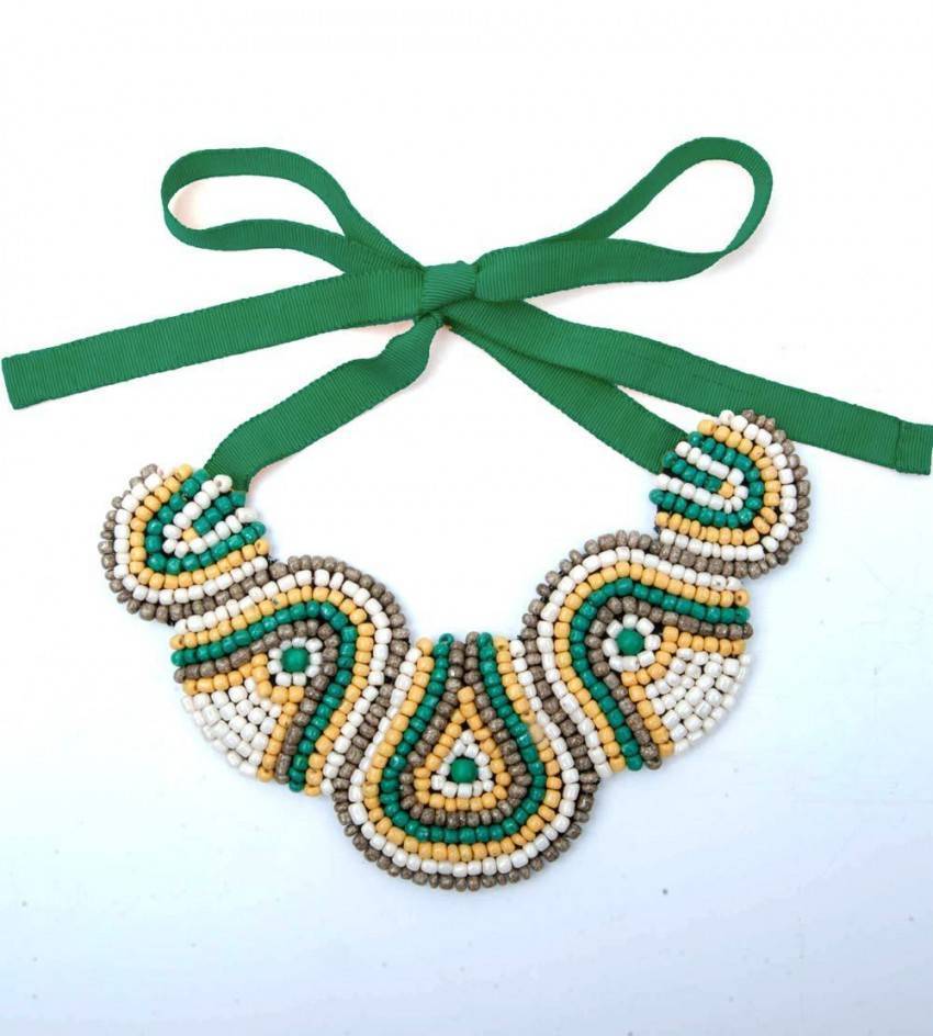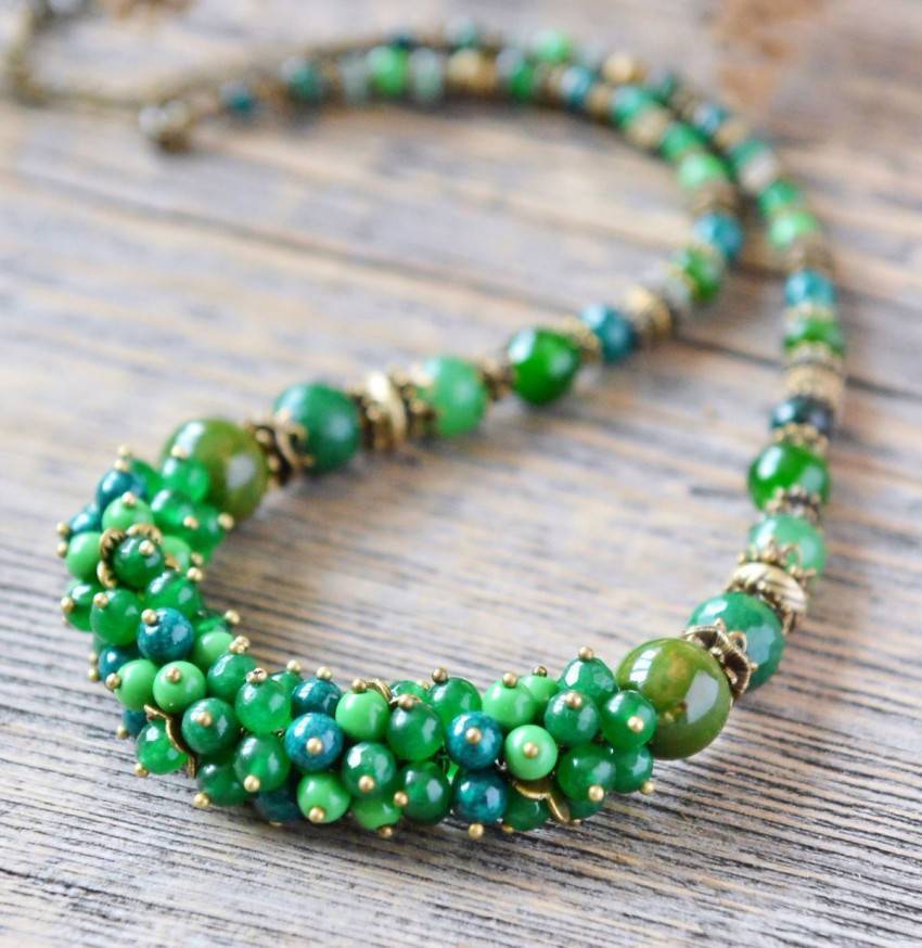 - Колье из бисера, бусин и декоративных элементов в этническом стиле.